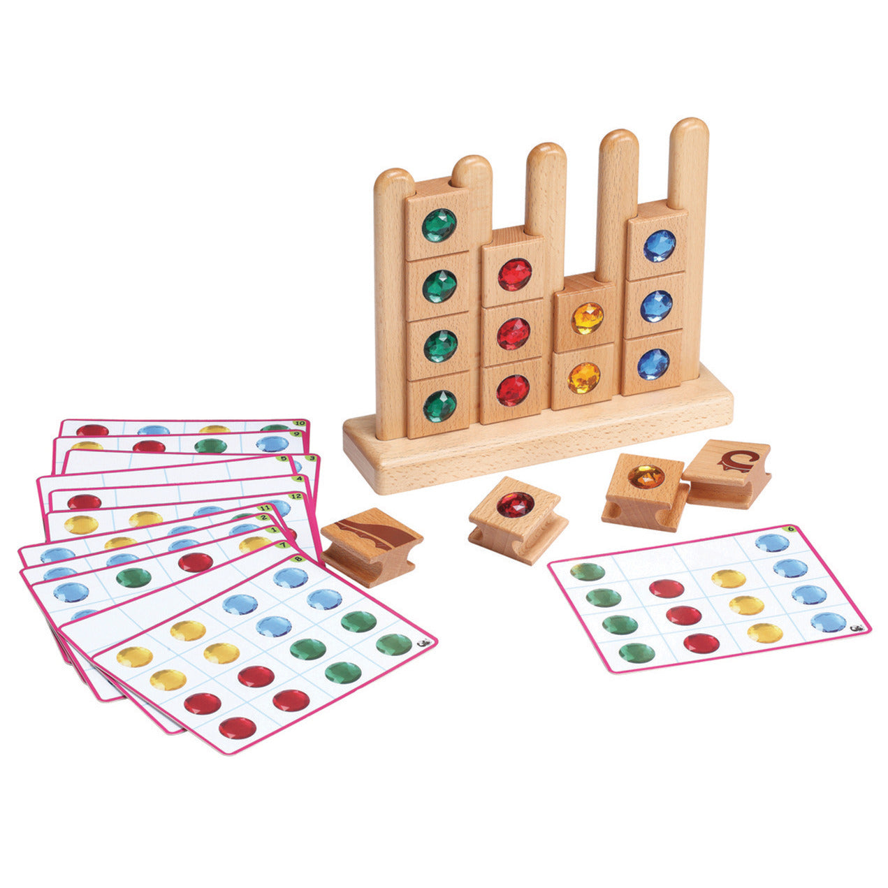240 x 200mm (l x w), Double-sided wooden blocks with a coloured gemstone on one side and a printed animal on the other. Use for simple stacking, colour matching and early maths.