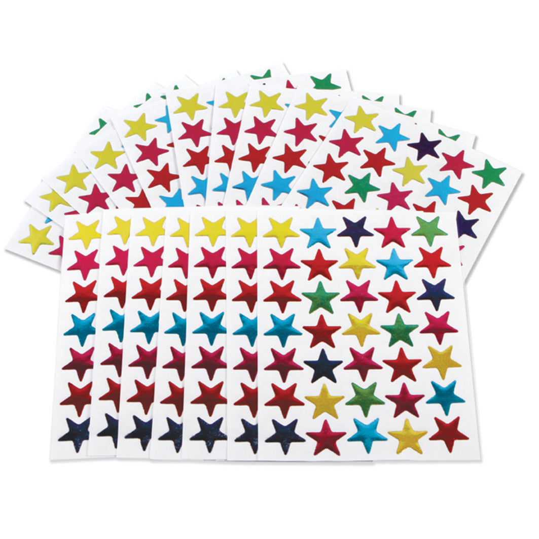 20 sheets of assorted coloured star stickers. Total of 700 per pack. 18mm.