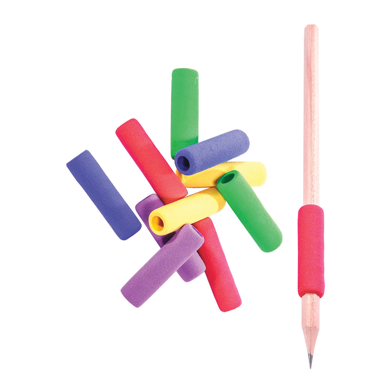 Colours may vary, Made in soft foam these pencil grips provide a comfortable and secure grip for small or less able fingers. Colours may vary. Pack of 10.