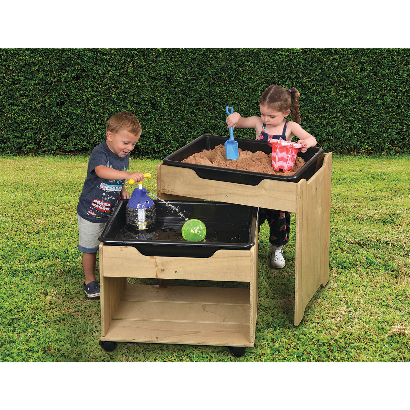 700mm overall height, This duo sand and water set is perfect for outdoor messy play and can be easily stored away after use.