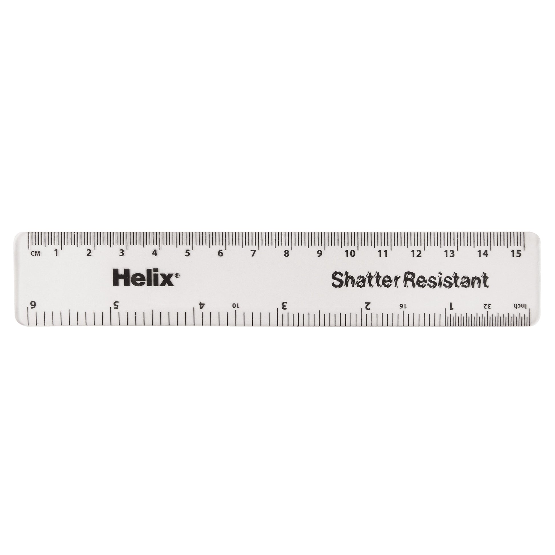 White, Pack of 50 white Helix® 15cm metric/imperial rulers. Double bevelled, graduated cm one edge, mm other.