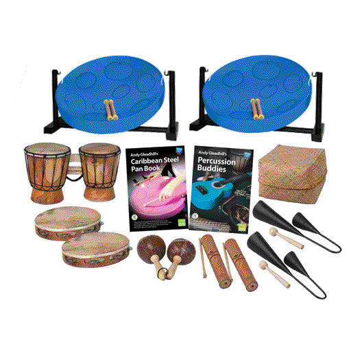 Includes two Jumbie Jam Steel Pans, five different types of percussion and 2 step-by-step teaching guides, all backed up by extensive online audio and video support.