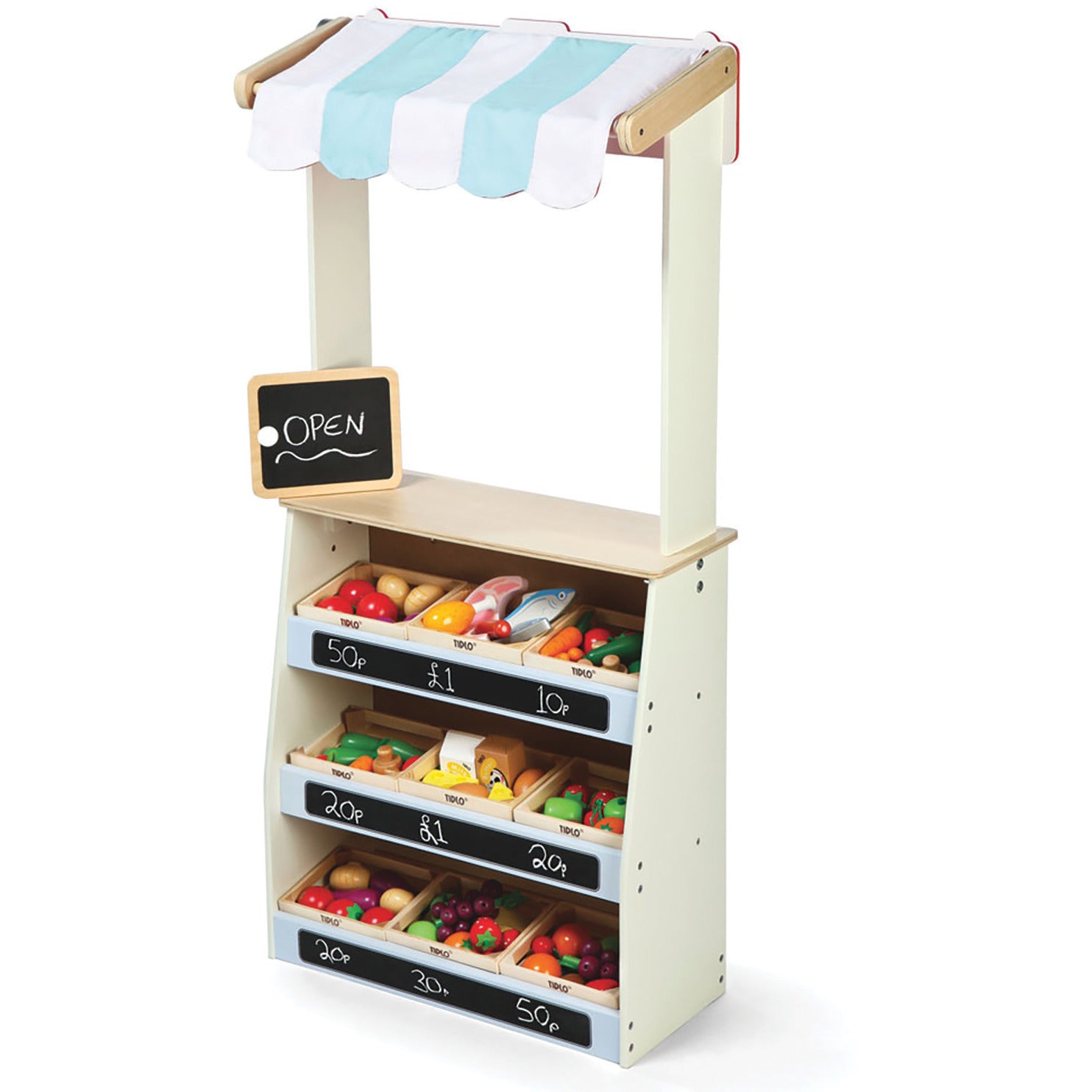 The Shop features a market stall design with a fabric roof and countertop area. Food crates not included.