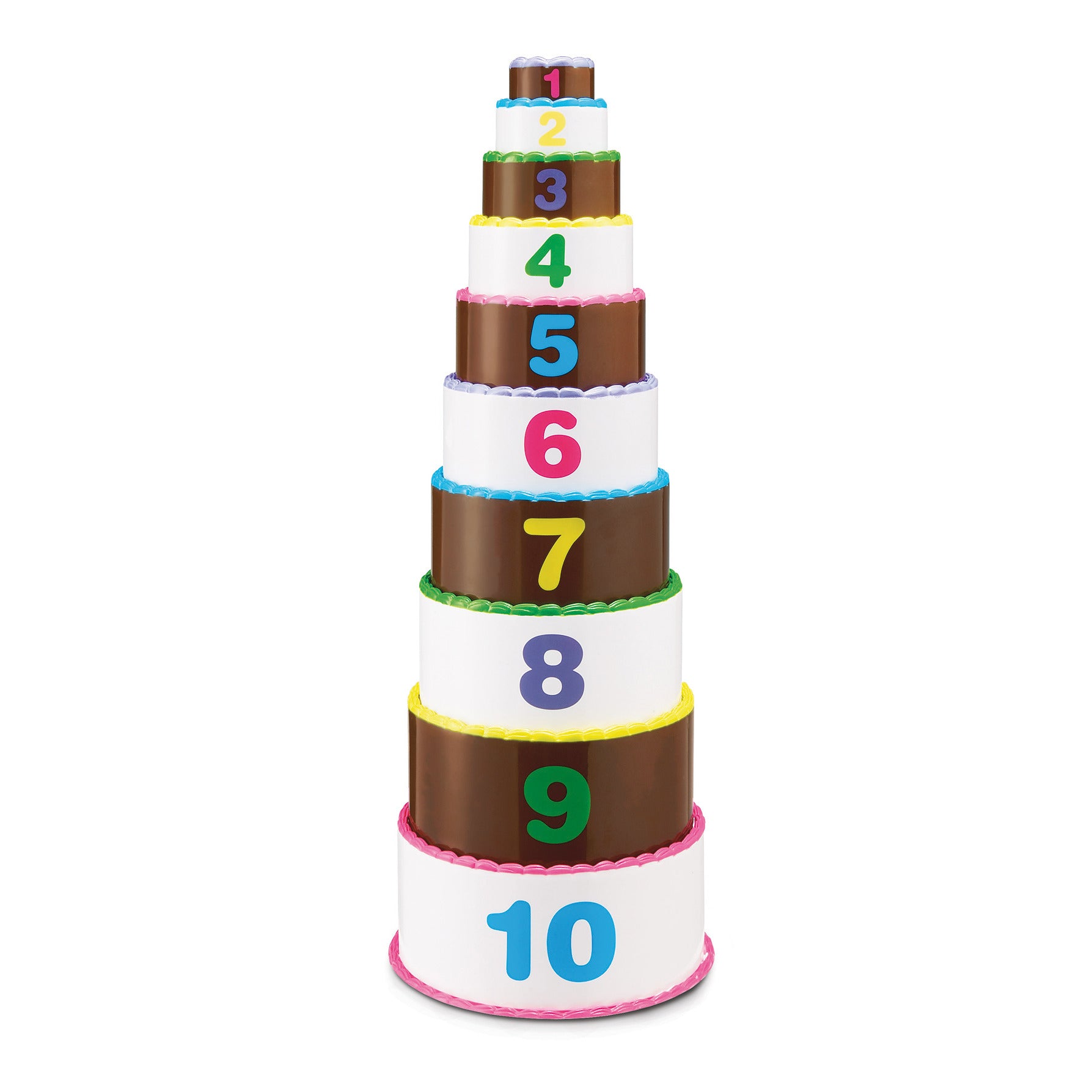 Height when stacked 550mm, Each of the 10 layers features countable decorations and a different coloured numeral (1-10) to support number sense, number recognition and sequencing. Colour coded chocolate and vanilla layers introduce odd and even numbers. Durable plastic layers are wipe clean and nest for storage.