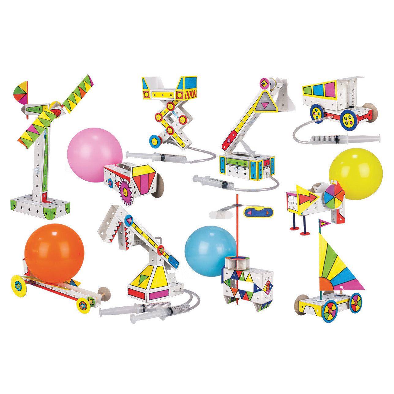 Kit has 3 each of the 10 core models, Explore strong shapes and structures through a set of models incorporating linkages, levers and winders. Investigate why things are the shape they are and how different materials are useful for different tasks. Explore how materials are shaped to make them more useful and learn how to build strong structures.